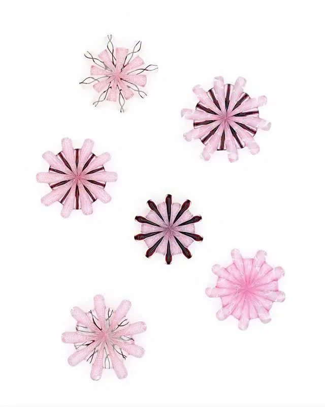 A few years ago when fundraising to launch Hohm-meyd, a version of these Rosette Magnets were our most popular Kickstarter campaign reward. We continued to get messages asking about them so we kept them as an available item on the Hohm-meyd website. However!… unlike the other “straight cane” ones that we offer, we have been saving these extra fancy ones from the making of my Glass Hearts!