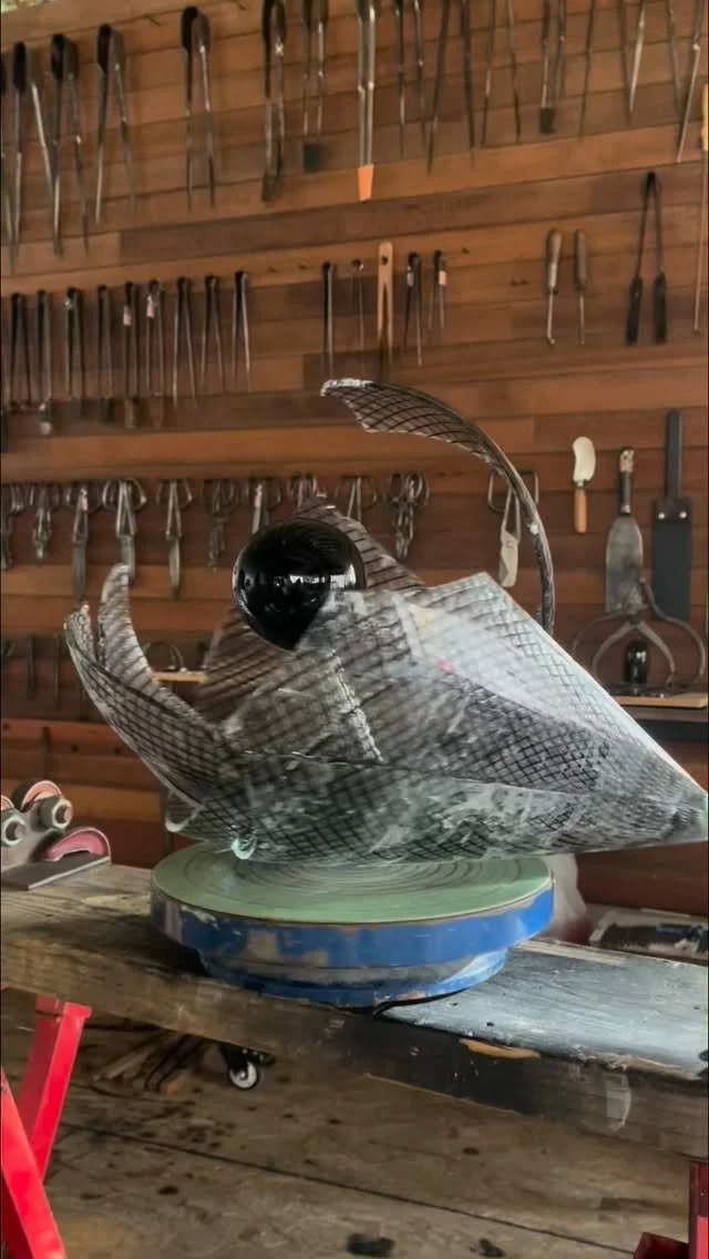 Original Sanctuary // 2008 // This piece came to life or “emerged” after years of my own deep depression. At times we all need or wish for a “safe/calm place”, whether it be mental or physical. The structure of the Reticello represents a barrier to protect and contain. The ball inside being myself; White was used to represent light, peace, and tranquility.